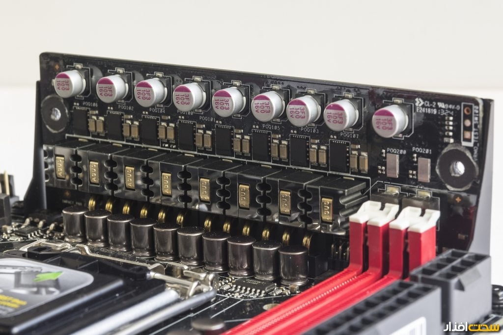 هر وسیله ضروری که برای اورکلاک حرفه ای نیاز دارید در این مادربورد نیز خواهید یافت. حتی جامپرهایی برای آماده سازی تنظیمات سیستم برای استفاده از خنک کننده LN2 نیز در نظر گرفته شده است و چهار اتصال چهار پین برای نصب فن نیز روی مادربورد وجود دارد. سوئیچ های روشن و خاموش و ریست، Debug LED و دکمه پاک کردن بایوس همگی روی یک مدار عمودی و با قابلیت دسترسی از طریق پانل پشت طراحی شده و دسترسی به آنها آسان است. در ضمن روی خود مادربورد نیز دکمه روشن و خاموش در نظر گرفته شده است. مدار رگولاتور 2+8 فاز در این مدل مانند دیگر سری های ROG از همان قطعات تشکیل شده است.