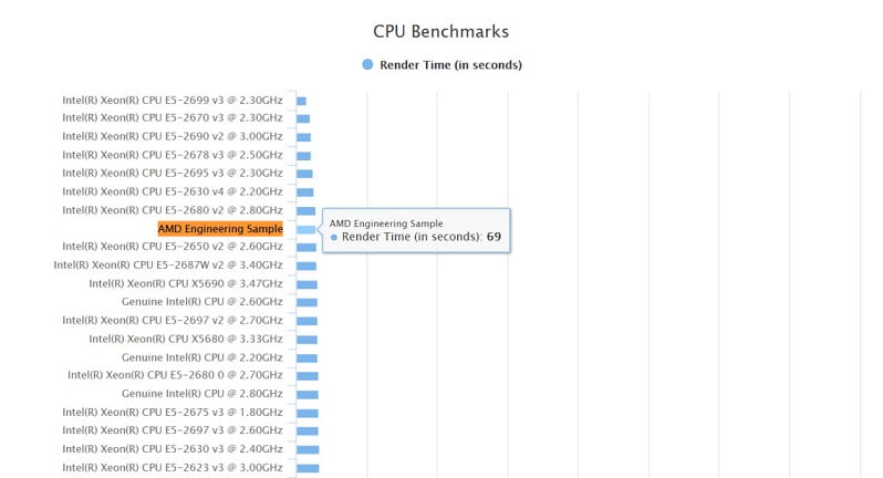 این پردازنده که به 8 هسته واقعی از خانواده ZEN مجهز است، با مدل نامشخص در لیست قرار گرفته است. عملکرد آن بسیار نزدیک به 10 هسته ای های Intel Xeon E5-2600 V2 است. پردازنده هایی از اینتل که تماما برای کاربردهای بسیار سنگین از جمله رندر، پردازش های ابری، سرور، ایستگاه کاری و… تولید شده اند.