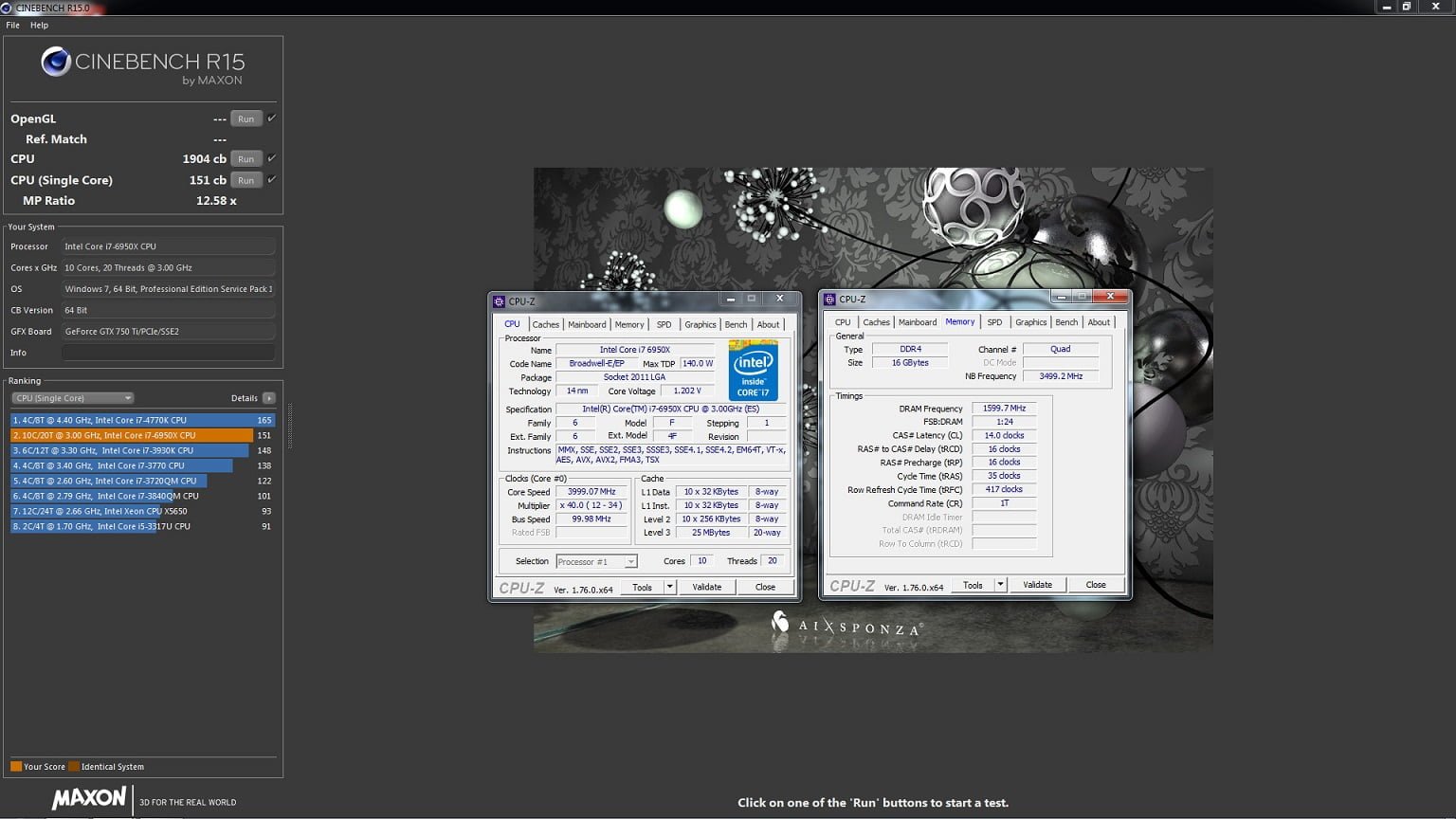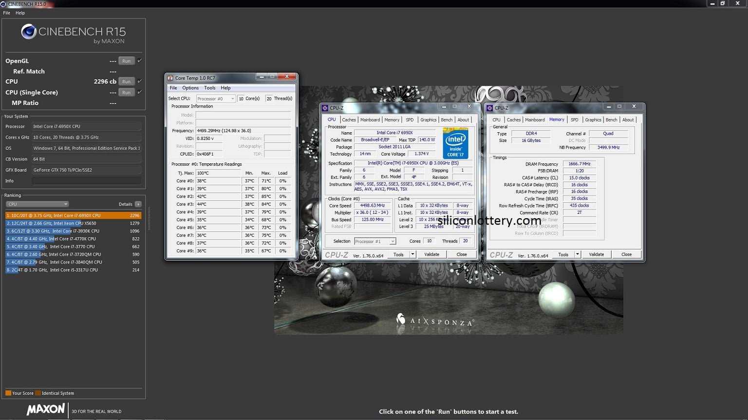 یکی از برجسته ترین قابلیت ها در معماری های 14 نانومتری اینتل،بالا بردن قابلیت اورکلاک به مقدار زیاد است.این پردازنده،در آزمون مورد نظر،به فرکانس 4.5 گیگاهرتز اورکلاک شده است.همچنین سیستم تست از پیکر بندی شامل مادربرد ASUS Rampage V Extreme،کارت گرافیک GeForce GTX 750 Ti و 16 گیگابایت حافظه ی رم در فرکانس 3000 مگاهرتز برخوردار است.