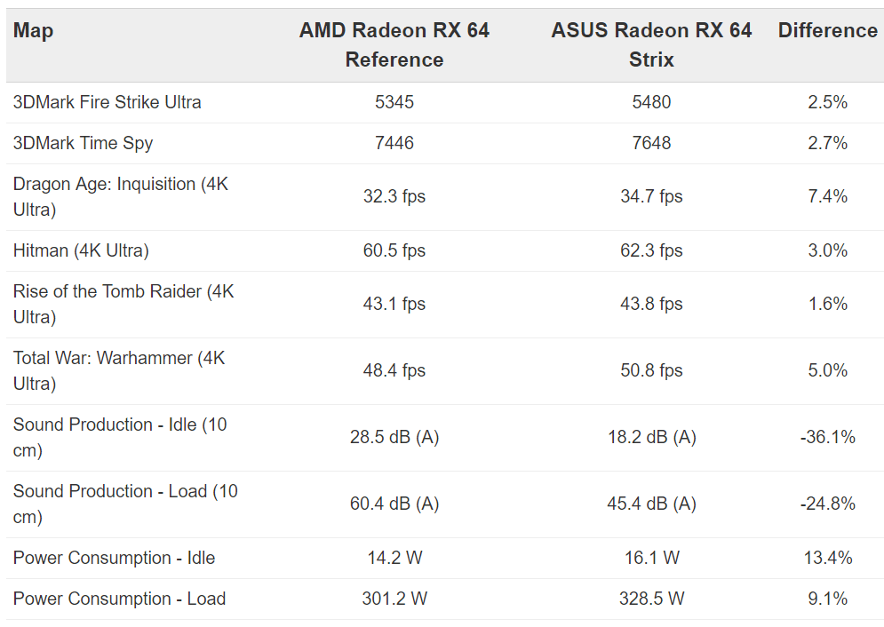 Hexus یک مقایسه سطحی بین ASUS ROG STRIX Radeon RX Vega 64 و مدل مرجع AMD RX Vega را انجام داده است که نشان از افزایش انرژی تا 44 وات است. همچنین هیچ تصویری از مدار چاپی (PCB) منتشر نشده است و باید در انتظار اطلاعات و معرفی رسمی باشیم. آیا همه ی مدل های سفارشی از وضعیتی مشابه بهره می برند؟ در این صورت خرید مدل های سفارشی به صرفه خواهد بود؟