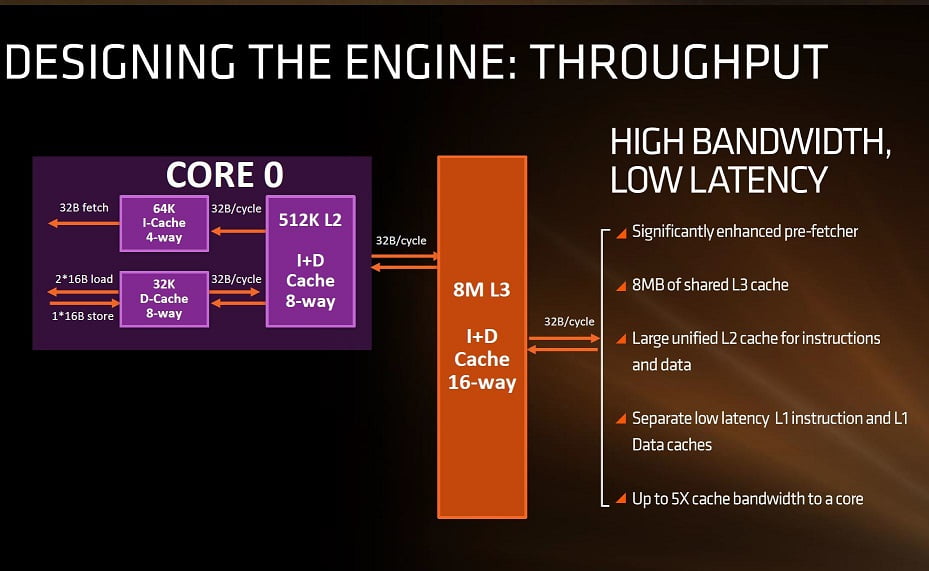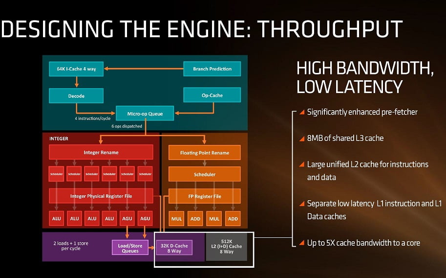 متخصصان AMD،به کیفیت بالا در طراحی هسته های ZEN اشاره کردند.قلب تپنده پردازنده های مورد نظر،از هسته های ZEN تولید شده است.این هسته ها،پردازش ها را تا 40% درصد سریعتر از نمونه های گذشته انجام می دهند.این در حالی است که بار اصلی معماری پردازش ها،بر عهده هسته های ZEN است؛به عبارت ساده تر،اگر پردازش ها در قالب زمان به ساعت تصور کنیم،هسته های ZEN به ازای هر ساعت پردازش،40% اطلاعات بیشتری را پردازش کرده و به خروجی منتقل می کنند.