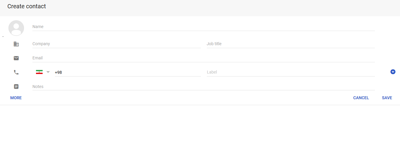 - سپس در صفحه ی ظاهر شده، اطلاعات مخاطب را وارد نمایید و آن را ذخیره کنید.