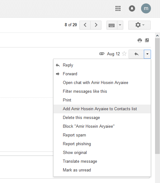 نحوه ی افزودن مخاطب از پیام های Gmail