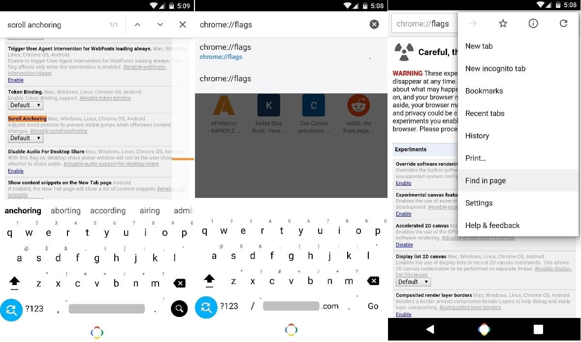 در ابتدا آدرس chrome://flags را در نوار آدرس مرورگر کرده سپس کلید اینتر را از صفحه کلید فشار دهید.حال کلید های ترکیبی ctrl+f را گرفته یا بر روی سه خاط افقی در بالا سمت راست صفحه کلیک کرده و گزینه find را انتخاب کنید. در قسمت find عبارت Scroll Anchoring را نوشته سپس تنظیمات Scroll Anchoring به صورت های لایت نمایش داده می شود. روش دیگر برای رفتن به Scroll Anchoring تایپ کردن آدرس chrome://flags/#enable-scroll-anchoring در نوار آدرس مرورگر می باشد.