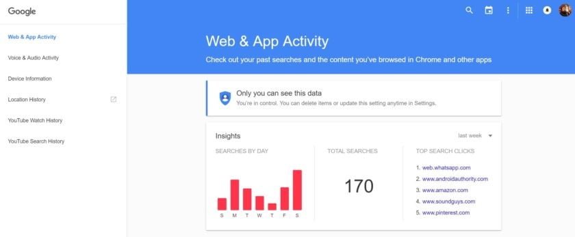 در اختیار داشتن تمامی اطلاعات شخصی توسط یک شرکت می تواند نگرانی هایی در مورد حفظ حریم خصوصی ایجاد کند.با یک نگاه سریع میتوان فهمید تمامی اطلاعات جست و جو شده ، مکان ها ، نرم افزار ها و حتی ویدئو های تماشا شده در اختیار گوگل قرار دارد.پاک کردن این تاریخچه میتواند به کاربران در داشتن خوابی راحت تر کمک کند! همچنین میتوان زندگی آسوده تری و بدون نگرانی از شکستن حفظ حریم خصوصی سپری نمود.