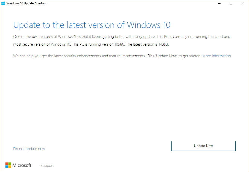 - روی گزینه ی Update Now کنید تا ابزار Windows 10 Update Assitant دانلود شود.