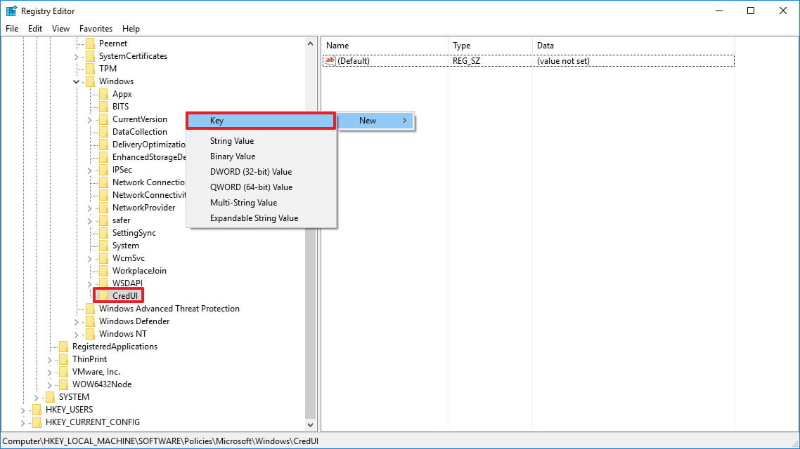 HKEY_LOCAL_MACHINE\Software\Policies\Microsoft\Windows\CredUI