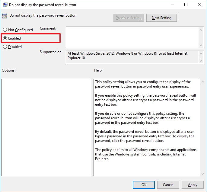 غیر فعال سازی گزینه ی Password Reveal توسط ادیتور Group Policy