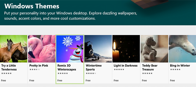 در پنجره باز شده تم های مختلفی برای ویندوز 10 ارائه شده است که می توانید بر روی تم مورد علاقه خود کلیک نمایید.