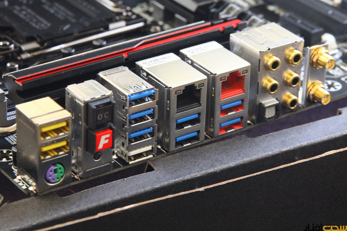 پانل پشت مادربرد به عنوان یک مادربرد مخصوص بازی امکانات خوبی ارائه می دهد. در اینجا دکمه های اورکلاک سریع، بوت سریع و ریست کردن بایوس نیز قرار گرفته اند