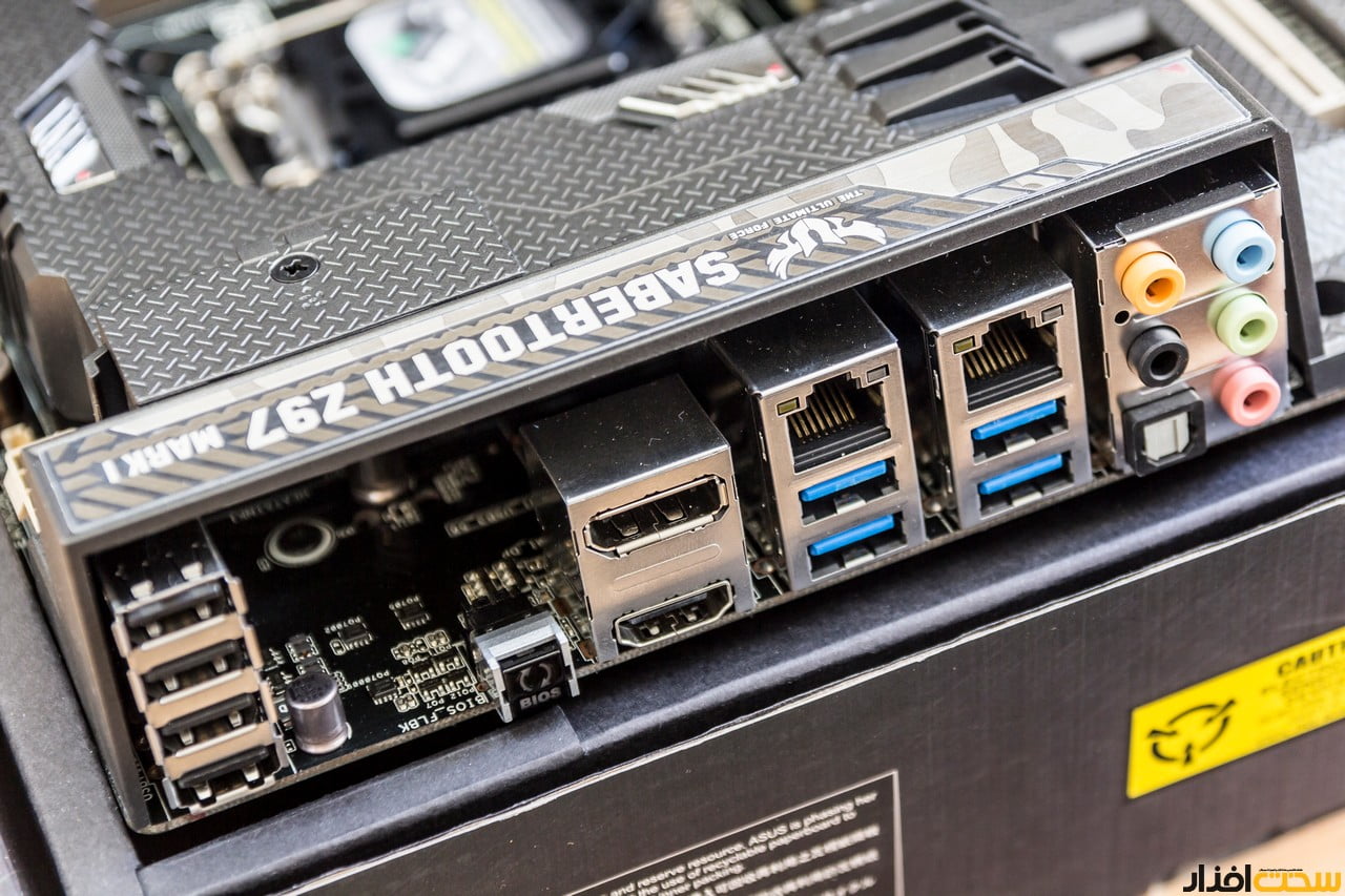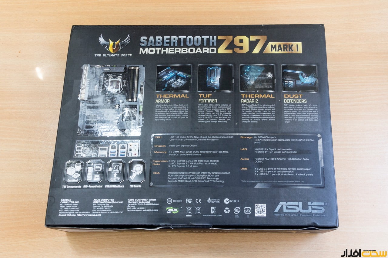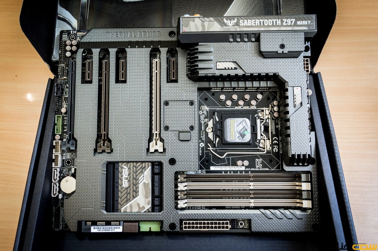 مادربورد Asus Z97 Sabertooth MARK I با همان سبک و سیاق قدیم طراحی شده است. یک قاب پلاستیکی روی سطح مادربورد را پوشانده و دو فن می توان روی این قاب نصب نمود.