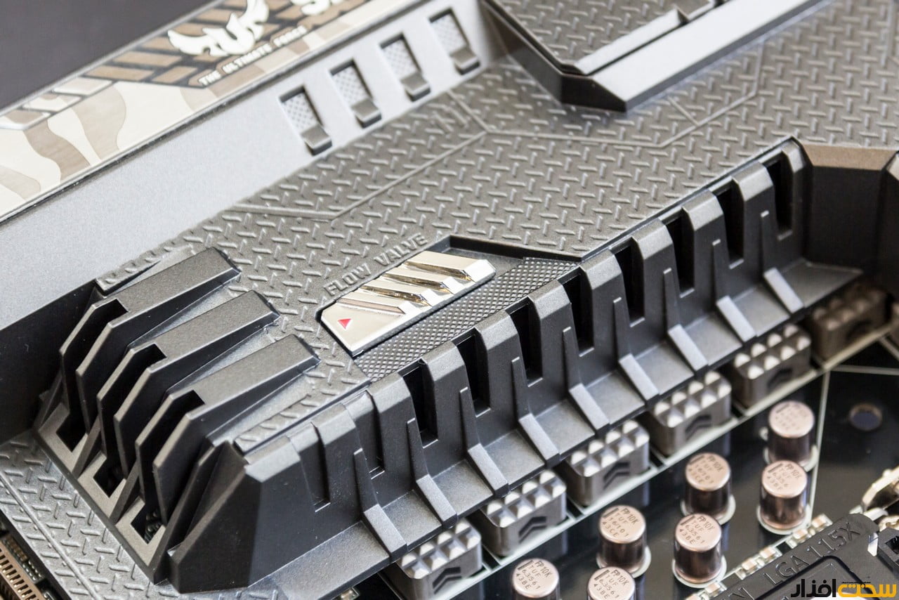 ایسوس دریچه هایی در این بخش قرار داده و به کمک دکمه نقره ای رنگ تعبیه شده در این بخش، می توان این شیارها را باز و بسته کرد. مشکل اینجاست که واقعاً تعدادی کمی کاربر پیدا می شود که کیس خود را باز کرده و در شرایط مختلف این دریچه ها را باز و بسته کنند!