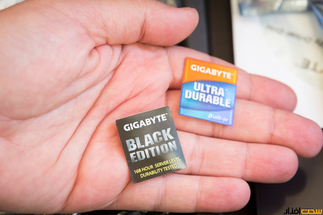 گیگابایت دو برچسب به همراه این مادربورد ارائه می دهد که می توانید به کیس یا به درب یخچال بچسبانید!