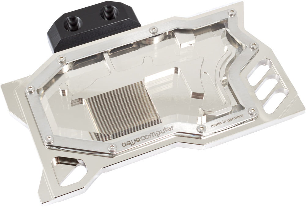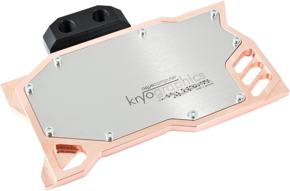 کمپانی آلمانی آکوا کامپیوتر (Aqua Computer) که به صورت تخصصی به طراحی سیستم های خنک کننده سطح بالا برای قطعات سخت افزاری اشتغال دارد، امروز بلاک خنک کننده آبی مخصوص کارت گرافیک انویدیا GTX Titan X را در 6 طرح مختلف معرفی کرد. این محصول که در سری kryographics قرار گرفته، از بلاک مس الکترولیتی CNC شده با خلوص بسیار بالا و ضخامت 10 میلی متری ساخته شده و فرآیند طراحی، تولید و ساخت آن به طور کامل در کشور آلمان انجام شده است. با استفاده از این بلاک قسمت های اصلی نظیر پردازنده گرافیکی ، حافظه رم و ماژول های تنظیم ولتاژ موجود بر روی برد چاپی به خوبی پوشش داده می شوند و این درحالیست که در محل اتصال پردازنده گرافیکی، یک میکرو ساختار مخصوص به ضخامت 0.5 میلی متر تعبیه شده است.