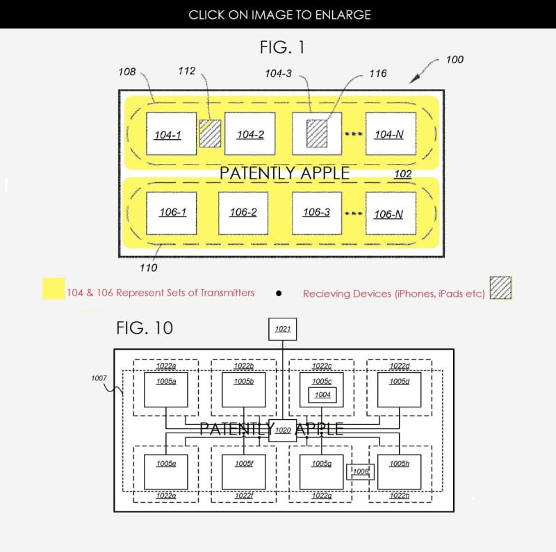 پس از اعلام قابلیت شارژ بیسیم در آیفون 8، اپل به دنبال یک راه حل جامع، تمامی محصولات خود اعم از کامپیوتر و گوشی های هوشمند را به فناوری شارژ بیسیم مجهز می کند. در همین راستا حتی محصولاتی که در فروشگاه این کمپانی هستند نیز بدین ترتیب شارژ می شوند. در اختراع اپل هر یک از سامانه های شارژ بیسیم می تواند تجهیزات این شرکت را از فاصله چند متری نیز شارژ نماید. در این تصاویر چند نمونه از سامانه های فوق وجود دارد و هنوز اطلاع چندانی از آنها در دست نیست.