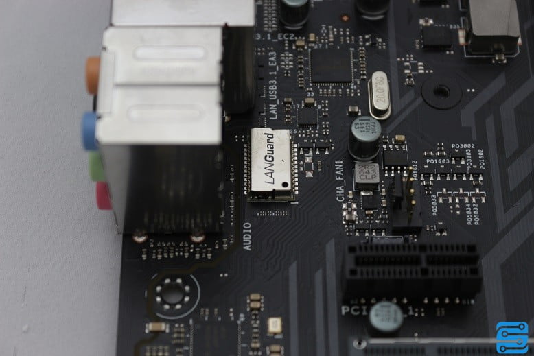 در قسمت پشت مادربرد نیز مدار LAN GUARD قرار گرفته است. این مدار جهت جلوگیری از تداخلات الکترونیکی و High-Voltage تعبیه شده است.