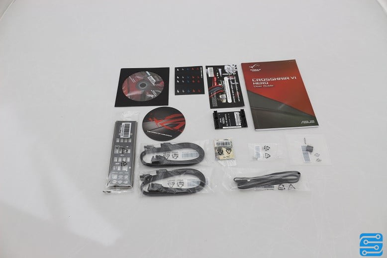 ادوات و تجهیزات همراه این مادربرد شامل برچسب های گیمینگ، DVD درایور و نرم افزارهای اختصاصی، یک عدد پل SLI HB، کابل های ساتا، پوشش آلومینیومی I/O، دفترچه راهنما، یک سوکت ترکیبی پنل کیس و پیچ ها است.