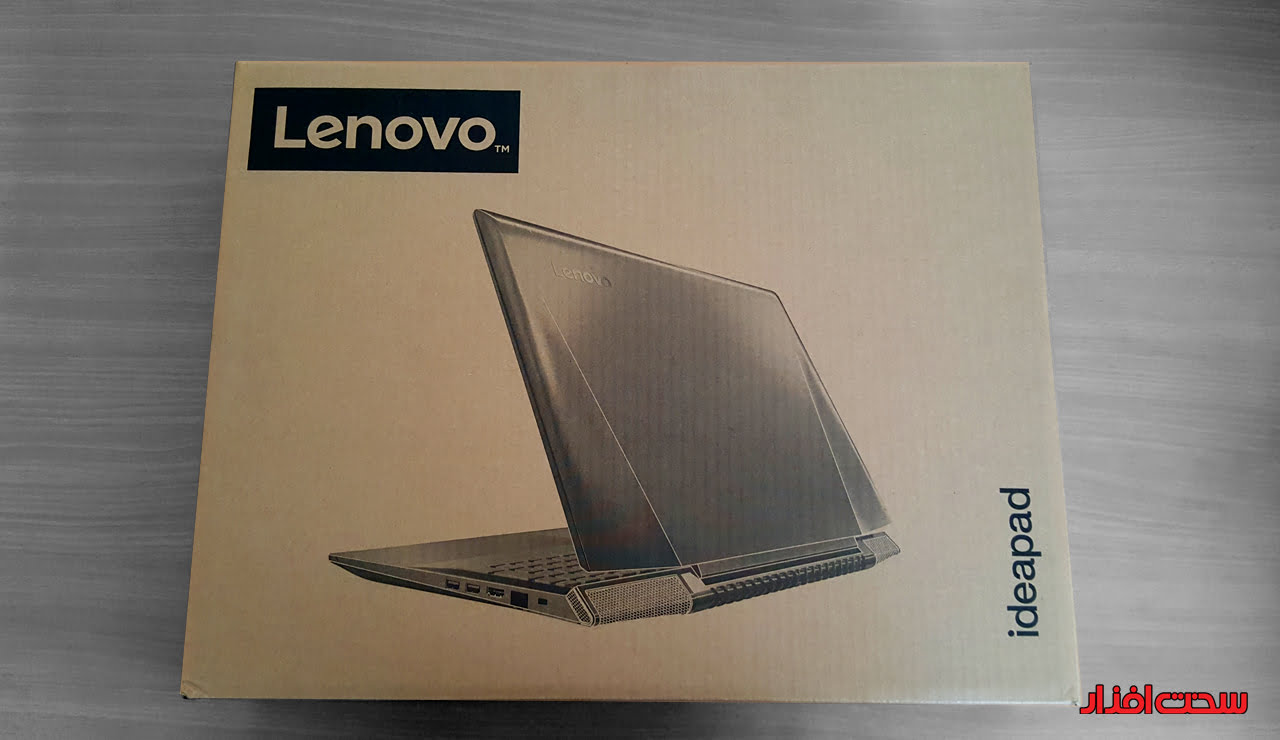 لنوو برای فرزند خود از جعبه بزرگی استفاده کرده است که با باز کردن آن لوازم جانبی و خود لپ تاب دیده می شود. جعبه لپ تاب همچون جعبه اصلی ساده است و تنها در نمای روبروی آن نوشته lenovo، نمایی از پشت لپ تاب و نوشته ideapad دیده می شود. (تصویر 1).