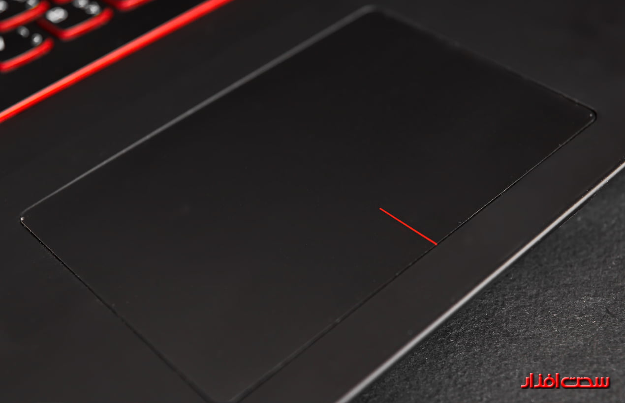 پد لمسی با ابعاد مناسبی که دارد (7×10.6 سانتی متر) کار در محیط ویندوز را راحت کرده است. این پد لمسی با پوشش یکپارچه پلاستیک مات و لمس چهار انگشت همزمان همان پدی است که در مدل Y50 قرار گرفته است. محیط چرخش انشگت بروی این پد لمسی برای اجرای فرامین و حساسیت مناسب آن نمره قبولی را در این بخش به دست می آورد. لنوو دکمه های کلیک چپ و راست را مخفی در نظر گرفته است و تنها با خطی قرمز در این پنل یکپارچه، محیط کار را برای کاربر کادر بندی کرده است. اگر برای بازی و کارهایی با دقت بالا می خواهید از پد لمسی و کلیک های آن استفاده کنید بهتر است سری به وسایل موجود در جعبه بزنید و ماوس ارائه شده را برای این هدف به کار ببرید (تصویر 7).
