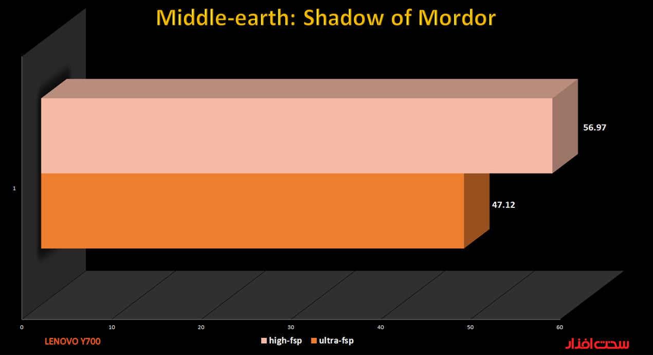 Middle-earth: Shadow of Mordor : این بازی برای این مورد استفاده قرار می گیرد که در خود گزینه بنچمارک را جای داده است و از عملکرد دقیقی برای اعلام نتایج برخوردار است. تنظیمات بخش گرافیکی برای ثبت امتیاز بروی Ultra و High قرار داده می شود. رزولوشن برای تست ها بروی 1080×1920 پیکسل قرار می گیرد. پس از اعلام نتیجه شاهد حداکثر فریم در ثانیه، حداقل فریم در ثانیه و متوسط فریم هستیم که برای نتیجه گیری درست قطعات از متوسط فریم استفاده می کنیم.
