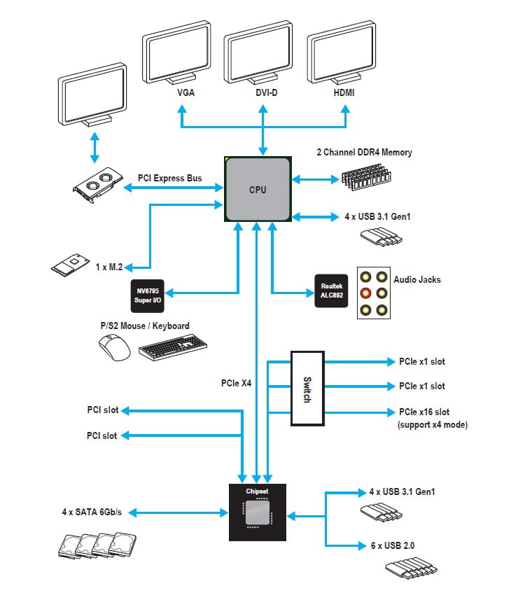 ( نکته در دیاگرام اینتل کارت گرافیک ، ماوس و کیبورد و m2 ابتدا به پل جنوبی میرود و فقط گرافیک مجتمع خود پردازنده مستقیم به cpu وصل است )