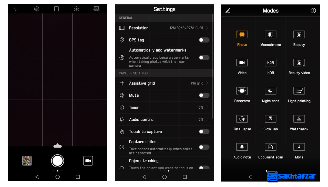 با لمس کردن صفحه به سمت راست می توانید مد های مختلف را انتخاب کنید در این بین می توان گزینه هایی مانند حالت سیاه و سفید، Beauty، HDR، پانوراما، عکاسی در شب، عکاسی در شب با کشیدگی نور، Time-lapse، فیلم برداری آهسته و بسیاری از ویژگی های دیگر را مشاهده کرد.
