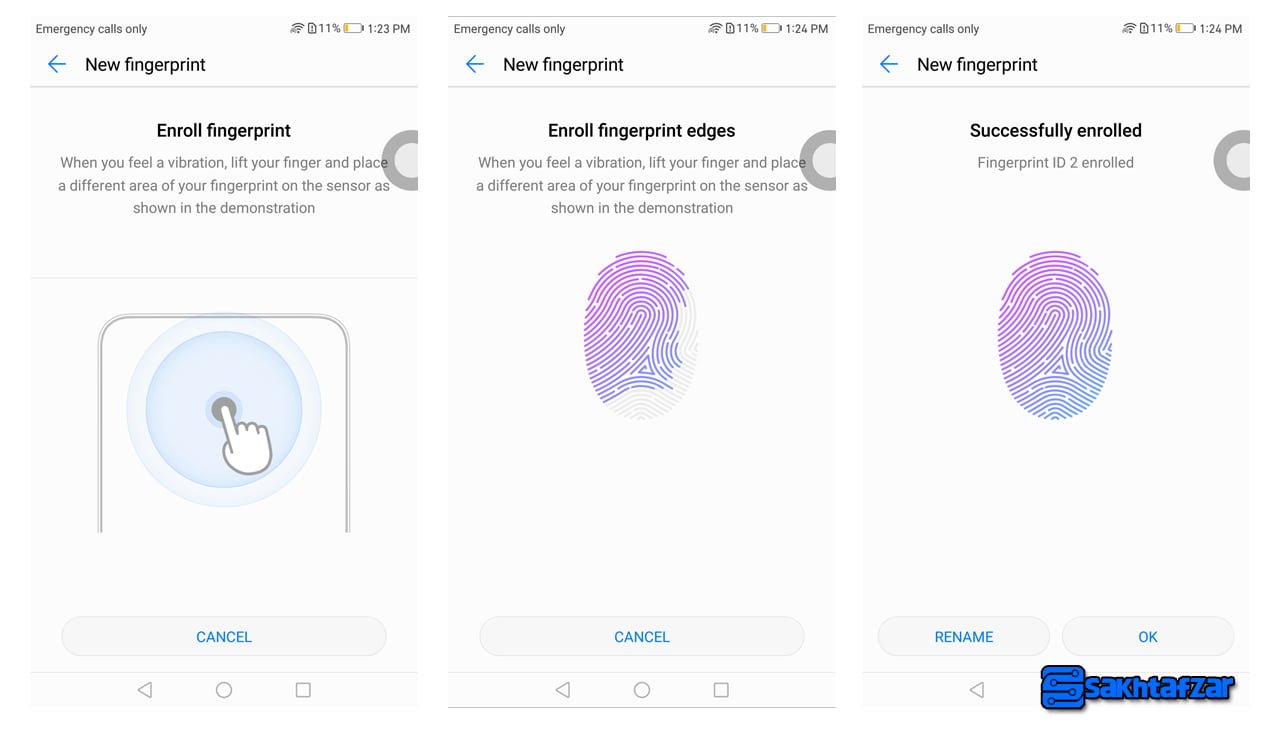سنسور اثر انگشت در محصولات هوآوی اکثراً در حالت اکتیو یا فعال انجام وظیفه می کنند. این سنسور گرد در پشت گوشی قرار گرفته است و عملکرد بی نقصی را از خود نشان می دهد. اکتیو یا فعال بودن سنسور به این معنا است که برای روشن کردن گوشی دیگر احتیاجی به فشار دکمه پاور نیست و تنها کافیست کاربر انگشت خود را بروی سنسور لمس کند تا نمایشگر و قفل گوشی باز شود. حساسیت و سرعت این سنسور بالا است و نمره قبولی را در این بخش دریافت می کند.