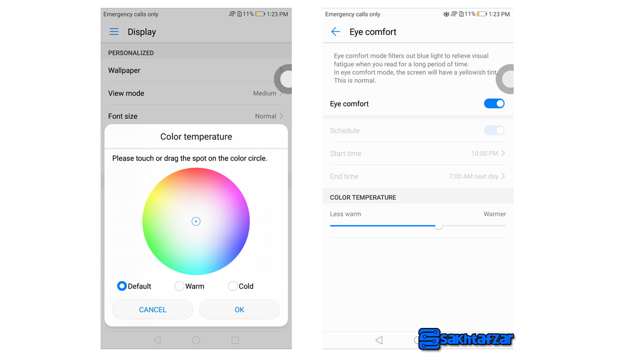 دو عکس مربوط به لنز رنگی و لنز سیاه و سفید