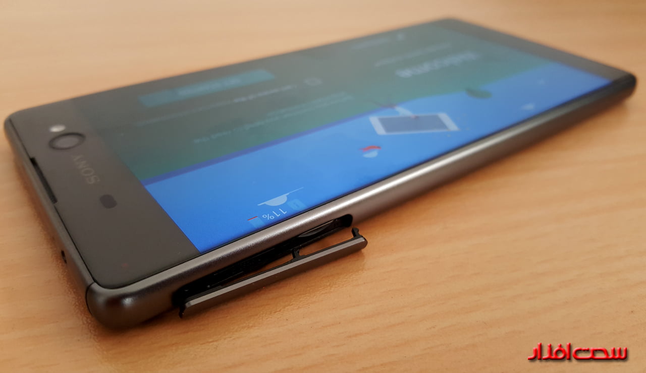 زمانی که این فبلت را در دست می گیرید از بزرگ بودن آن حس کاملا مثبتی ندارید ولی کیفیت ساخت و چهره آن مطمئناً شما را مجذوب خودش می کند. این گوشی با وجود ابعاد بدنه 8.4×79×164 میلی متر، حس پایداری بالایی را در ذهن مخاطب پرورش می دهد و آن هم تنها به دلیل استفاده از جنس بدنه مناسب است که باعث می شود سطح استحکاکی خوبی را با دست مخاطب ایجاد کند. در نمای جلویی می توان لنز بزرگ دوربین ثانویه، فلاش دوربین، سنسورهای مجاورتی، نشان سونی، اسپیکر مکالمه، صفحه نمایش بدون حاشه که تقریبا منحنی است و حاشیه پهن بالا و پایین را مشاهده کرد.