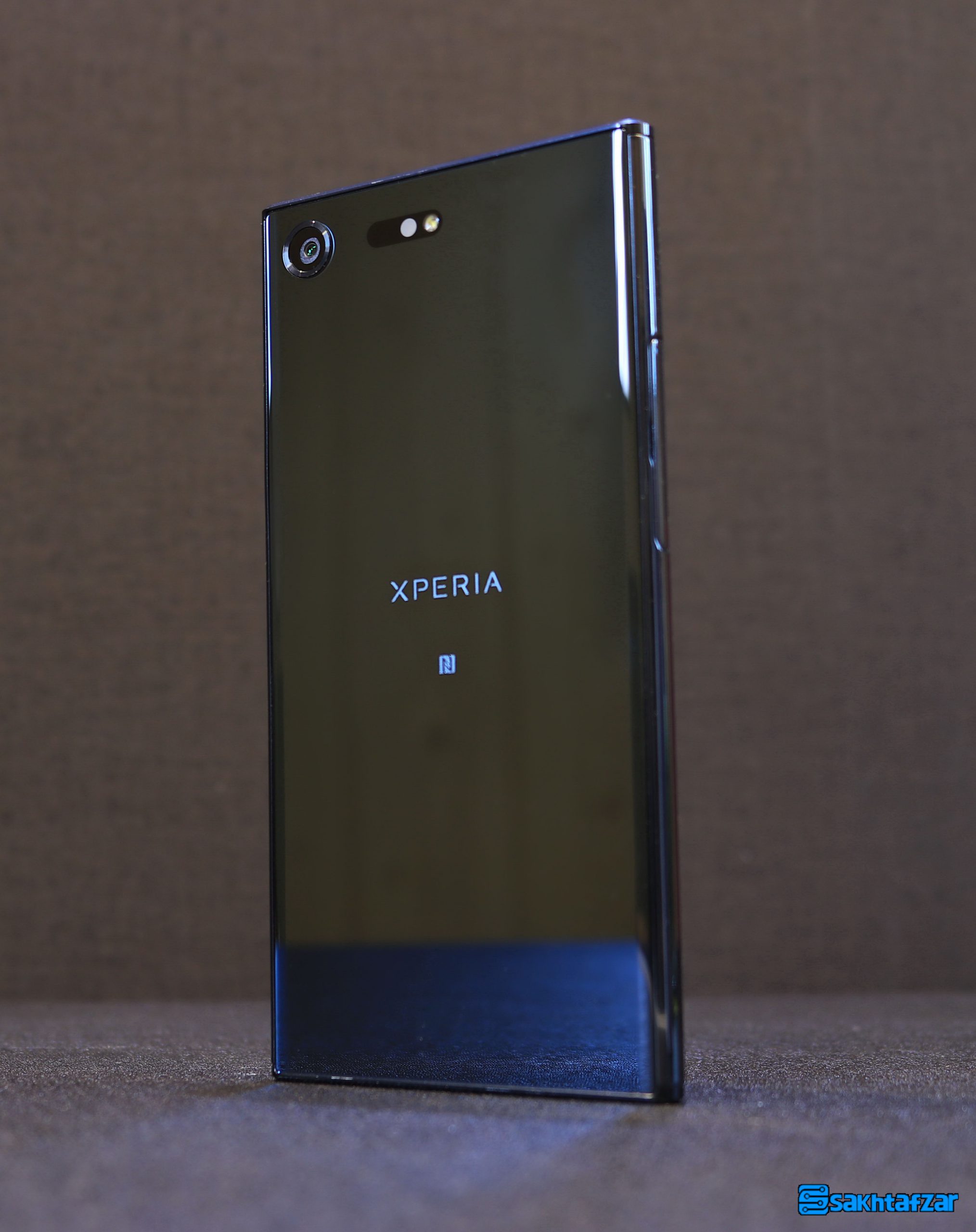 اگر سونی در نمای روبرو هیچ گاه نسبت عالی نمایشگر به بدنه را در نظر نگرفته است اما به واقع باید نمای پشت محصولات این شرکت را عالی توصیف کرد. نمایی ساده اما کاملاً منطقی و شیک. سونی در این نما همچون جلوی گوشی از پوشش Corning Gorilla Glass 5 استفاده کرده است. پوششی براق که می توان در آن محیط اطراف و بازخورد هر آنچه در کادر این پوشش قرار می گیرد را مشاهده کرد. دوربین، فلاش، فوکوس لیزری و تشحیص فاز، نشان سونی و نشان NFC را می توان در این بخش مشاهده کرد.