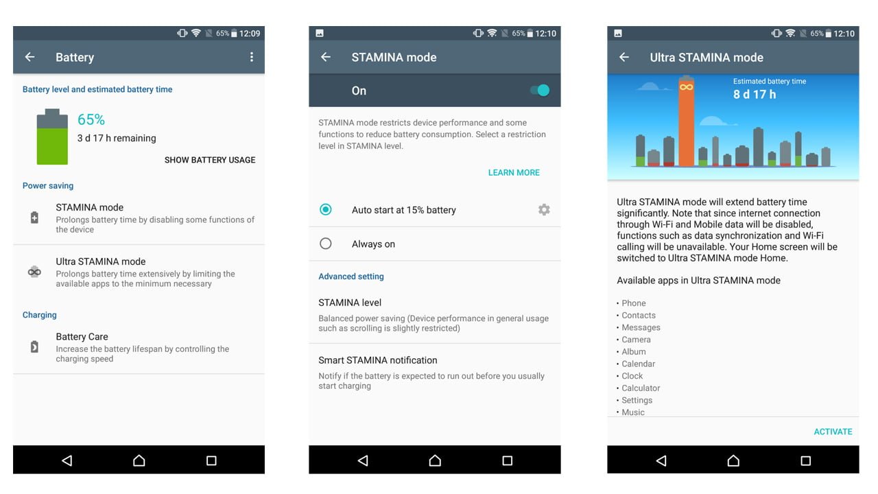 اما برای اینکه بازدهی بیشتری را از این باتری به دست آورید می توانید گزینه هایی مانند SAMINA و Ultra STAMINA را فعال کنید. در صورتی که گزینه Ultra STAMINA را فعال کنید، بسیاری از نرم افزارها غیر فعال شده و رابط کاربری به ساده ترین حالت خود تبدیل می شود.