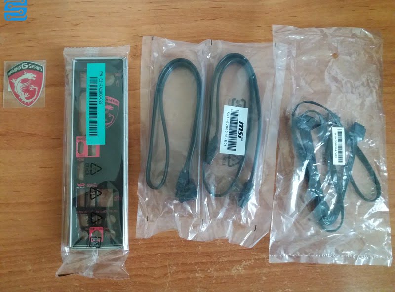 پس از آن، با بیرون آوردن مادربرد از جایگاه خود، دیگر موارد همراه آن را در بخش زیرین مشاهده خواهیم کرد. یک پوشش فلزی پنل I/O با نشان گیمینگ MSI، دو کابل SATA III و یک رابط هدر 4 پین از جمله موارد درون بسته بندی است.