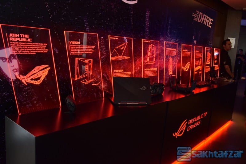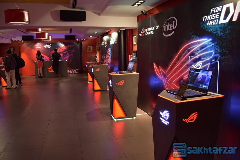 نمایی از طبقه بالای مکان کنفرانس را شاهد هستید که برترین و جدید ترین لپ تاپ های گیمینگ این کمپانی برای نمایش و تست، آماده شده بود. همچنین کامپیوتر پیشرفته ی ROG MOTHERSHIP نیز در این مکان به نمایش گذاشته شده بود که در روزهای آتی با اطلاعات بیشتری در این زمینه در کنار شما خواهیم بود.
