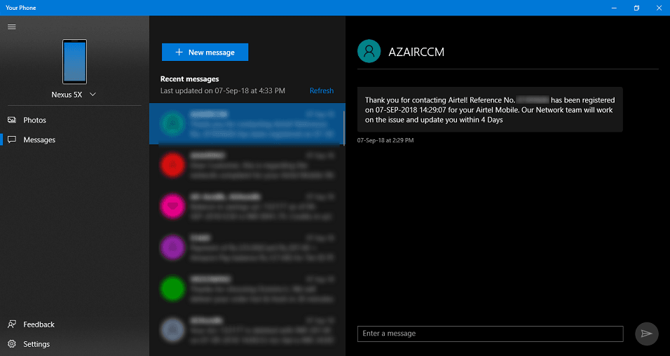 در حال حاضر کاربران می توانند از طریق این قابلیت به مشاهده پیام ها و ارسال SMS از ویندوز کامپیوتر خود بپردازند. پس با استفاده از نسخه ی جدید این برنامه امکان ارسال SMS از کامپیوتر امکان پذیر خواهد شد. البته لازم به ذکر است که تاکنون امکان ارسال SMS از طریق کروتانا نیز ممکن بود. این قابلیت جدید به زودی در دسترس تمام مردم جهان قرار خواهد گرفت و این نسخه ی بروزرسانی ارسال پیام ویندوز نیز در فروشگاه مایکروسافت ارائه خواهد شد.