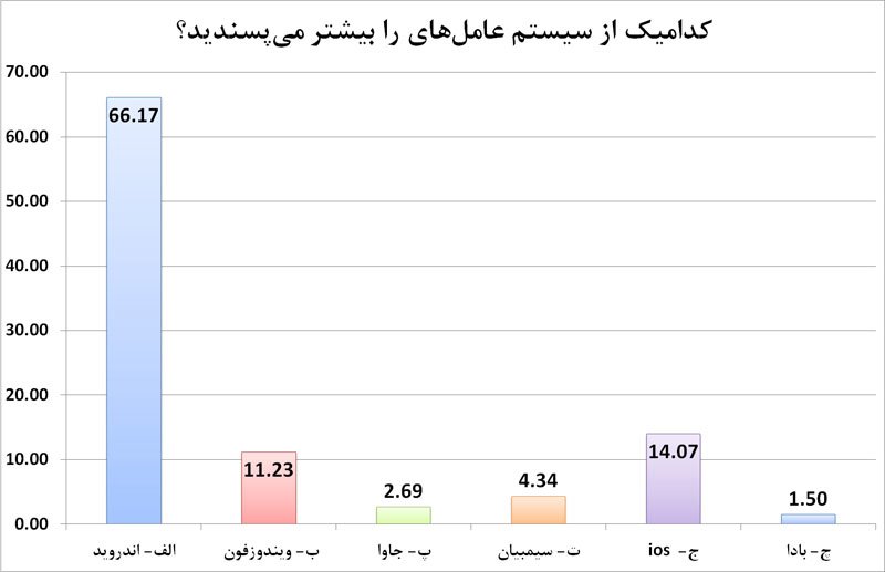 با سلام خدمت تمامی زحمت کشان واقعا نتایج خیلی جالبه مخصوصا محبوبیت اپل چون در سوالهای مربوط به انتخاب گوشی و تبلت رای ها چیز دیگری میگویند ولی در کل اطلاعات خیلی مفیدی بود با تشکر از شما.