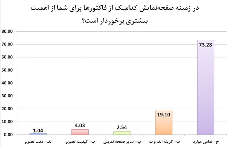 4- در زمينه صفحهنمايش کداميک از فاکتورها براي شما از اهميت بيشتري برخوردار است؟