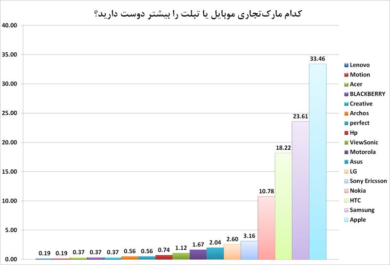 7- کدام مارکتجاري موبايل يا تبلت را بيشتر دوست داريد؟