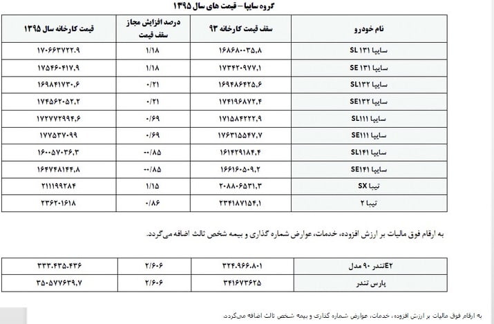 بر اساس اطلاعیه شواری رقابت (که در نهایت همچنان مشخص نیست در حال بررسی رقابت بین کدام شرکت ها با یکدیگر است)، خودروهای داخلی تولید شده در دو شرکت سایپا و ایران خودرو در سال 1395 می توانند افزایش قیمت داشته باشند که این جمله به معنی صدور اجازه برای شرکت های خوردو سازی برای افزایش قیمت محصولاتشان است. بر اساس مصوبه ای که روز گذشته و به گفته شورای رقابت، با محاسبات صورت گرفته در مرکز ملی رقابت اجرایی خواهد شد، شرکت های یاد شده قادر خواهند بود هر مدل از خودروهای تولیدی خود را با توجه به جداولی که در اختیار رسانه ها قرار گرفته گران تر به فروش برسانند. برای مثال پژو 206 با موتور 1600 سی سی و گیربکس دستی می تواند با افزایش قیمتی معادل 3.9364 درصد مواجه شود، رانا LX با افزایش قیمت 3.17 درصدی روبرو خواهد شد، سمند LX بنزینی می تواند 2.12 درصد افزایش قیمت داشته باشد و در کمپانی رقیب (!) هم سایپا 131 SL با افزایش قیمت 1.18 درصدی و تیبا SX هم با افزایش قیمت 1.15 درصدی مواجه خواهند شد.