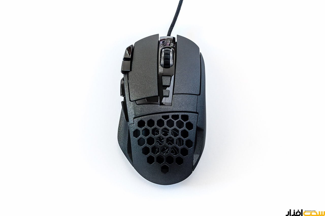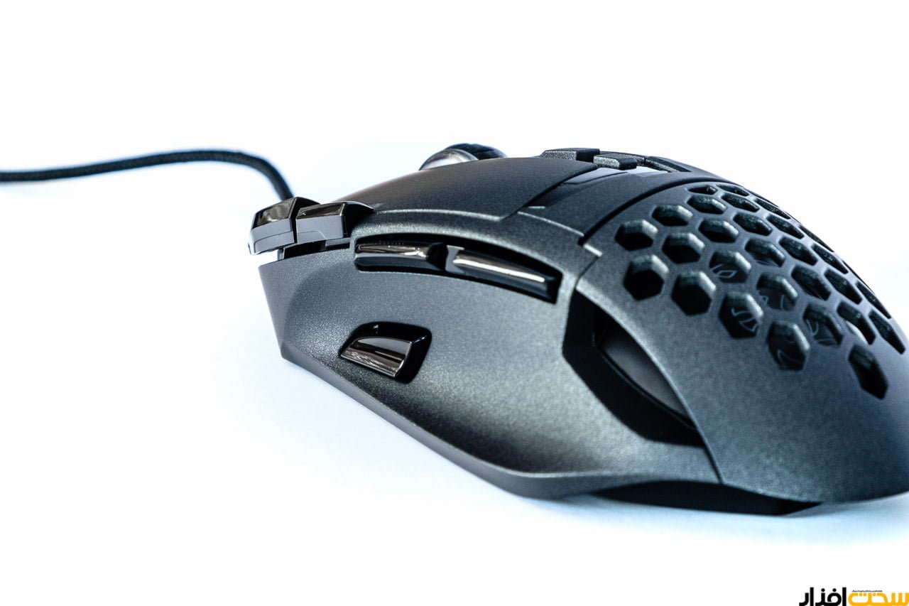 یکی از مواردی که می تواند در کار گیمر ها خلل ایجاد کند بحث تعرق دست بخصوص در زمان استفاده از ماوس است. ترمالتیک نیز به این نکته توجه داشته و سعی کرده در برخی محصولاتش راهکارهایی برگزیند تا مسئله تعرق دست را تا حدودی برطرف کند. استفاده از روکش ضد تعرق، شیارها و مسیرهایی برای عبور هوا و حتی استفاده از فن داخل ماوس جزو راهکارهایی بوده که تا کنون ترمالتیک در محصولات مختلف اش استفاده کرده است. در این ماوس نیز شاهد استفاده از روکش ضد تعرق هستیم و در عین حال، بخش توری شکل با سوراخ های نسبتا بزرگ و دو شیار در کناره های ماوس، سعی می کنند تا مسیری برای عبور جریان هوا فراهم کنند.