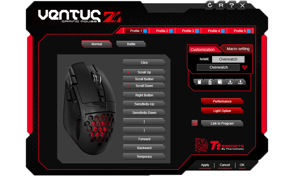 دسترسی به دکمه های جانبی نسبتا مناسب است و قطعا دکمه Sniper برایتان مفید واقع می شود. حرکت ماوس روی سطوح مناسب بوده و با وجود دقت بالا، کاربران دیگر علاوه بر گیمر ها می توانند از این ماوس در کارهای مختلف سود ببرند. طراحی نرم افزار ماوس مشابه با دیگر محصولات تولید شده توسط ترمالتیک است. بخشی برای تنظیمات مربوط به پروفایل ها کلید ها در نظر گرفته شده و از آنجا که این محصول در رده RGB قرار میگیرد، یک صفحه اختصاصی برای تنظیمات مربوط به رنگ نیز در نظر گرفته شده است.