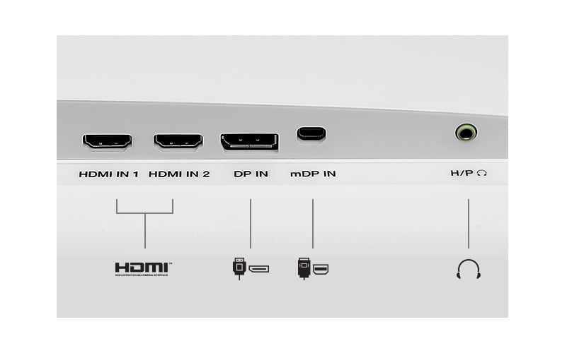 در طراحی این مدل از لبه هایی باریک استفاده شده است اما متاسفانه خبری از پورت های USB-C یا Thonderbolt 3 در مدل 32QK500-W نیست. تنها پورت های موجود در این مانیتور ال جی، پورت های Mini DisplayPort ،DisplayPort و دو پورت HDMI هستند.
