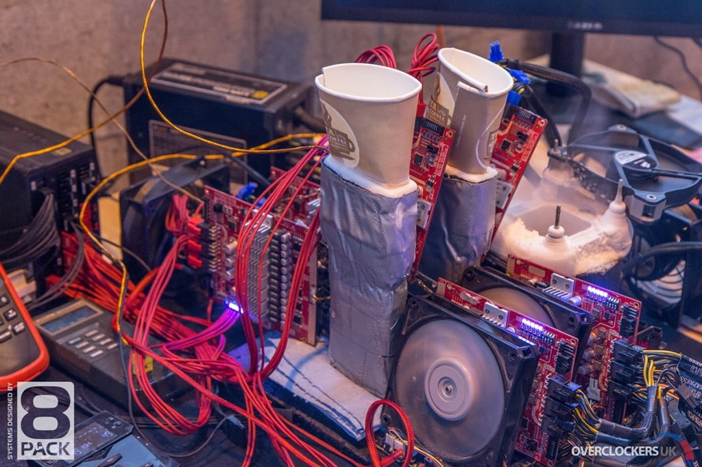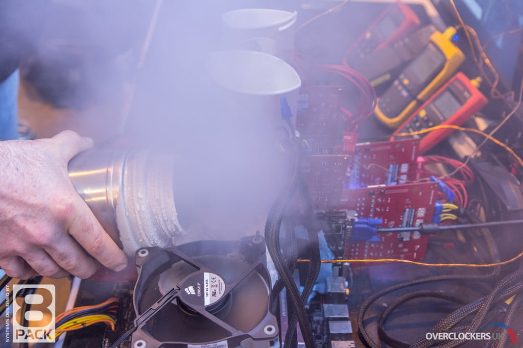 8Pack با کمک این مجموعه توانسته فرکانس هسته کارت های گرافیک را از 720 مگاهرتز به 1590 مگاهرتز برساند. ولتاژ مورد استفاده در این حالت 1.4 ولت بوده و دمای هسته گرافیکی روی منفی 45 درجه سانتیگراد نگه داشته شده است! این سیستم در نهایت توانست رکورد اول این مرحه، یعنی امتیاز P8957 را در نرم افزار 3DMark 11 به ثبت برساند.