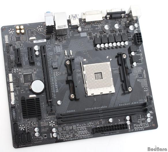 اما به تازگی تصاویری از اولین مادربردِ قابل عرضه مستقیم منتشر شده است که از خانواده AMD AM4 در پردازنده های 8 هسته ای Summit Ridge پذیرایی می کند.این مادربرد و یا به عبارت بهتر دو مادربرد مورد نظر به احتمال بسیار از چیپست های X370 و B350 استفاده می کنند چرا که نام یکی از آنها نیز B350M-D2 است.این مادربردها تولید کمپانی “گیگابایت” هستند و دارای امکانات نوینی هستند که شاید در مادربردهای مبتنی بر “اینتل” چندان غیر عادی نباشد.از جمله آنها می توان به 2 الی 4 اسلات حافظه DDR4،یک الی دو اسلات PCI Express 3.0،پورتهای USB 3.1 Gen 2،حافظه های ذخیره سازی NVME و مواردی از این دست اشاره کرد.مدار چاپی (PCB) بسیار خلوت و متمرکز است.دیگر به مانند سابق (مادربردهای AM3 و…) قطعات متعدد الکترونیکی در آن دیده نمی شود و این نشانه خوبی است.