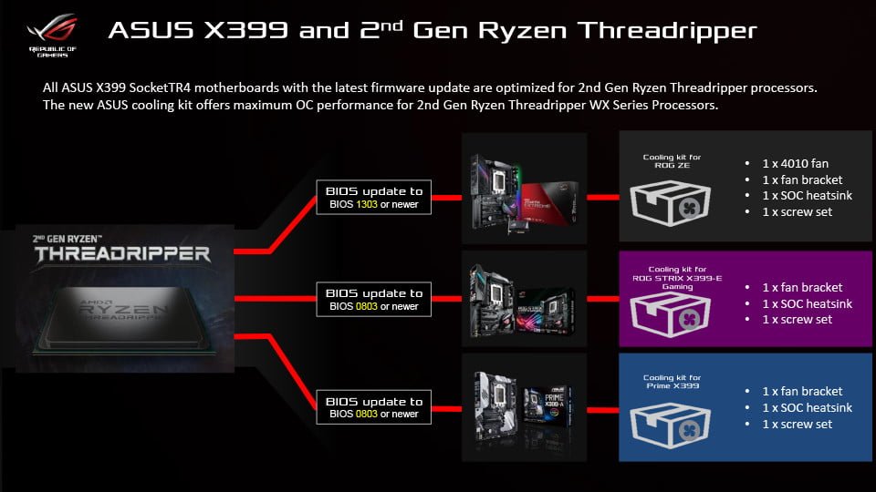 نسل دوم پردازنده های AMD Ryzen Threadripper که این روزها سر و صدای بسیاری را به راه انداخته است، به وسیله بروزرسانی مادربردهای X399 پیشین و جدید، قابل اجرا است. در همین راستا شرکت های تولید کننده مادربرد، آپدیت هایی را ارائه کرده اند اما مسئله ی جدیدی که در این میان مطرح شده است، مدار تغذیه یا VRM مادربردهای پیشین X399 است. کمپانی ایسوس، برای پشتیبانی هر چه بهتر برخی مادربردهای خود از پرچمداران 32 و 24 هسته ای Ryzen Threadripper، تصمیم به ارائه یک کیت گرفته است.