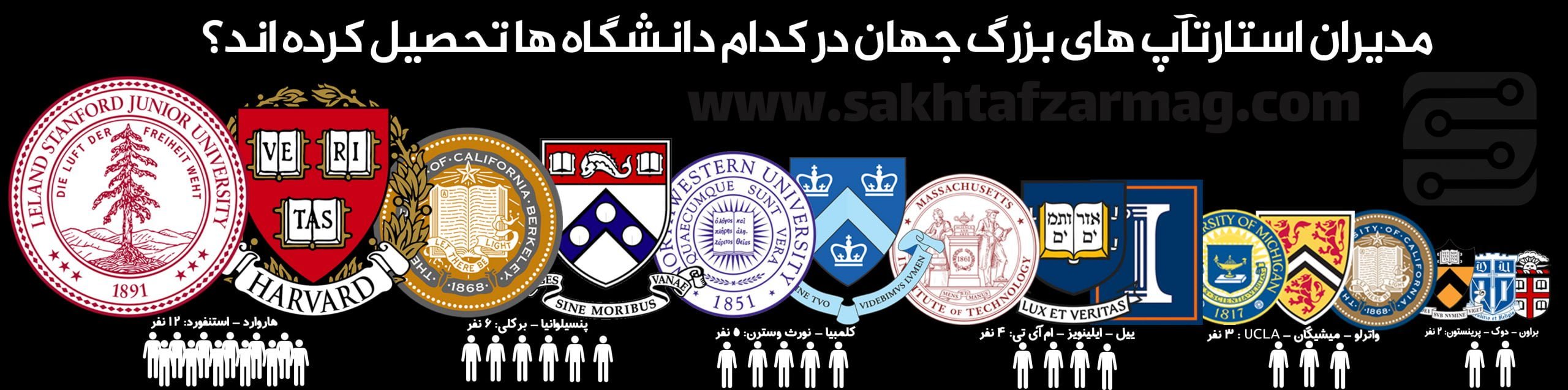 در اینفوگرافی پیش رو خواهید دید مدیران استارت آپ های بزرگ و ثروتمند جهان در کدام دانشگاه ها تحصیل کرده اند. در این رده بندی 193 شرکت خصوصی که توانسته اند بیش از 100 میلیون دلار به عنوان سرمایه جذب کنند و در طول سه سال گذشته فعال بوده اند مشخص شده اند.