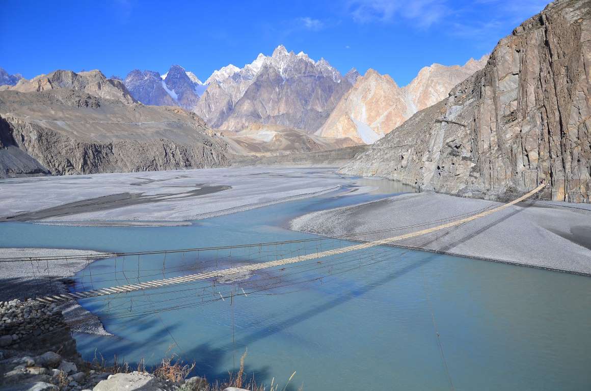 این پل معلق در بالای رود هونزا در روستای هوساینی واقع شده است. تخته های چوبی بر روی این پل کاملا با فاصله نسبت به یکدیگر قرار دارند و این فاصله ایجاد ترس و وحشت میکند. بر طبق گزارشات این پل در می 2010 در سیلاب غوطه ور شده بود. این احتمال وجود دارد که گردشگران هیجان طلب این پل بازسازی شود.
