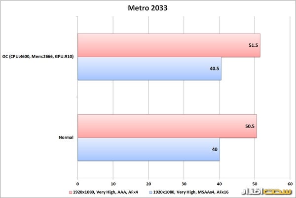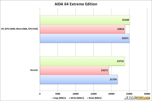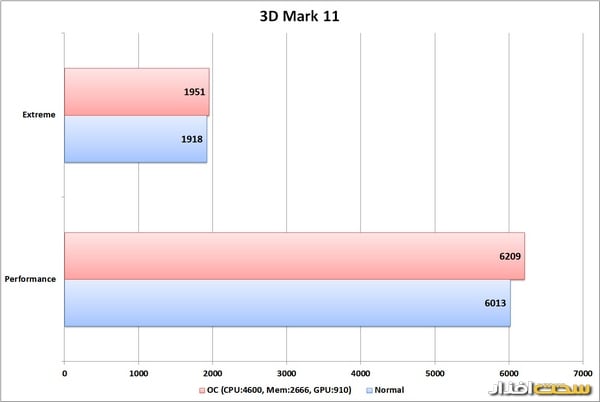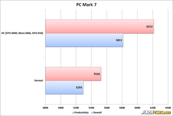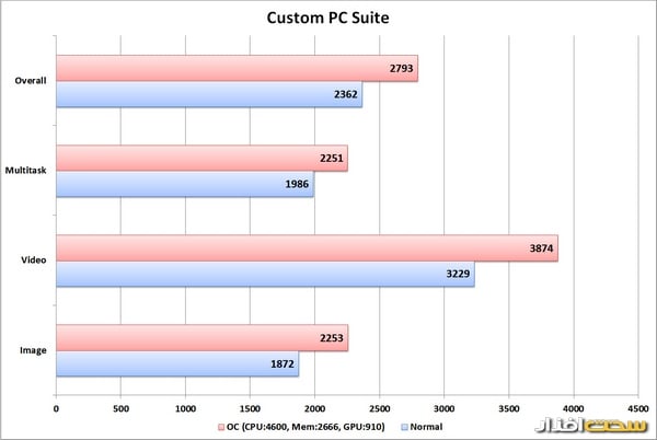 برای بررسی قابلیت اورکلاک، تصمیم گرفتیم نه تنها پردازنده، بلکه حافظه و کارتگرافیک را نیز اورکلاک کنیم و ببینیم، یک سیستم میلیونی مخصوص بازی تا چه حد میتواند کارایی را نسبت به وقتی که همه چیز در حالت استاندارد قرار دارد، افزایش دهد. نتایج تست در حالت اورکلاک نیز در نمودار نتایج درج شدهاست.