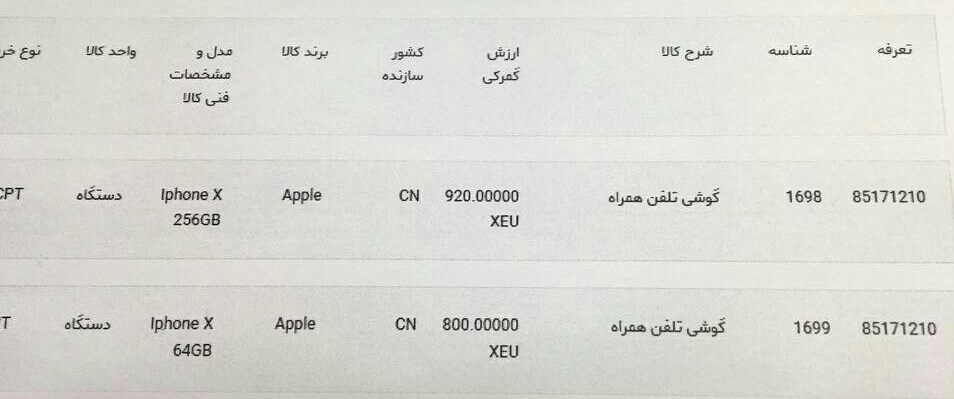 داستان از خبر روز جمعه 12 آبان خبرگزاری تسنیم آغاز شد. این خبرگزاری مدعیست به اطلاعاتی دست یافته که نشان می دهند آیفون های جدید اپل با چه قیمتی در گمرک ایران پذیرفته شده اند. بر اساس این گزارش، آیفون X با ظرفیت 64 گیگابایتی با قیمت 800 یورو و آیفون X با ظرفیت 256 گیگابایتی با قیمت 920 یورو از گمرک ترخیص شده و در اختیار وارد کننده قرار گرفته اند.