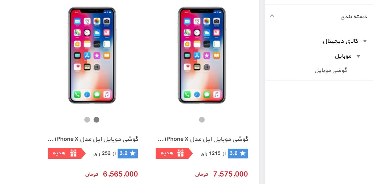 آیفون X مدل 64 گیگابایتی | 800 | 3.825.000 تومان |