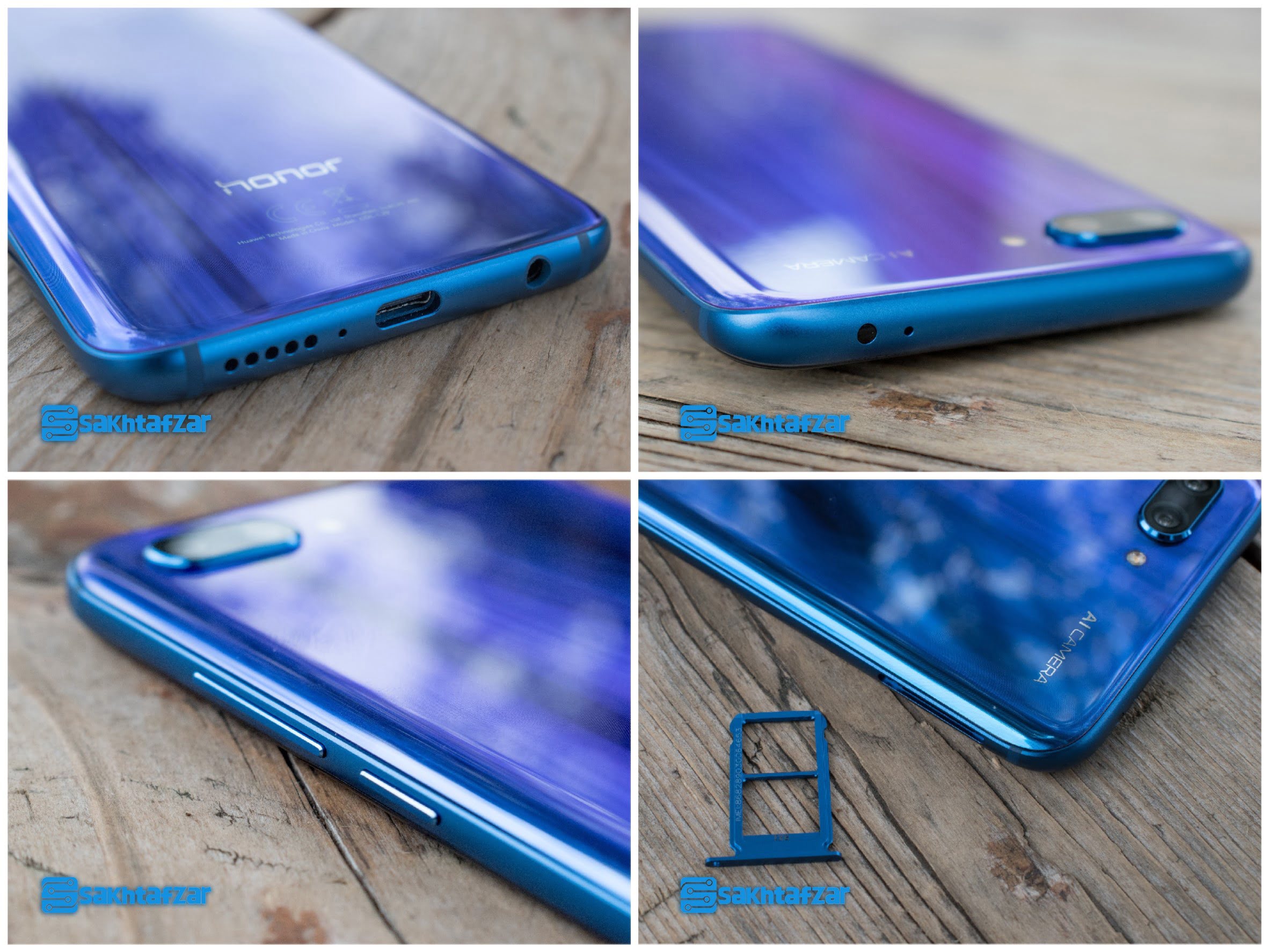 اگرچه به نظر میرسد با روندی که در طراحی گوشیهای سال 2018 فراگیر شده، باید از این پس با این سبک طراحی کنار بیاییم. البته خوشبختانه آنر یکی از تولیدکنندگان گوشیهای هوشمند است که به نظر مخاطبین خود احترام میگذارد، از همین رو قابلیت مخفیسازی نرمافزاری ناچ را در تنظیمات آنر 10 لحاظ کرده است. لبه پایینی نمای جلوی گوشی پذیرای حاشیهای نه چندان نازک است. این حاشیه جایگاه حسگر اثر انگشت این گوشی میباشد. آنر این بار برای پرچمدار جدید خود، فناوری تازهای با نام اولتراسونیک را در حسگر اثر انگشت آن به کار گرفته است. این حسگر زیر شیشه قاب جلوی گوشی قرار گرفته و برای آنکه جای آن مشخص باشد، با نقطههایی سفید رنگ از مابقی حاشیه پایین نمایشگر متمایز شده است. به جز اینکه حسگر اثر انگشت جدید سرعت عمل خوبی مانند فناوریهای پیشین ندارد، نقطههای سفید دور آن نمای ظاهری گوشی را هم کمی تحت تأثیر خود قرار داده است، اما خوشبختانه این نقاط تنها از نمای نزدیک قابل مشاهده میباشند. از طرف دیگر به لطف قابلیت تشخیص چهره بسیار سریع این گوشی، احتمالاً بهندرت سراغ استفاده از حسگر اثر انگشت آنر 10 خواهید رفت.